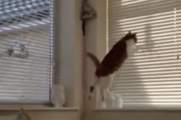 據(jù)英國《鏡報(bào)》5月3日報(bào)道,一只瘋狂的喵星人看到一只鳥,正妄圖美餐一頓的時(shí)候,卻撞在百葉窗上,它驚訝地發(fā)現(xiàn)那不過是窗外的鳥映在窗戶上的剪影,這才意識(shí)到被欺騙了。這個(gè)滑稽的過程被主人拍了下來。
